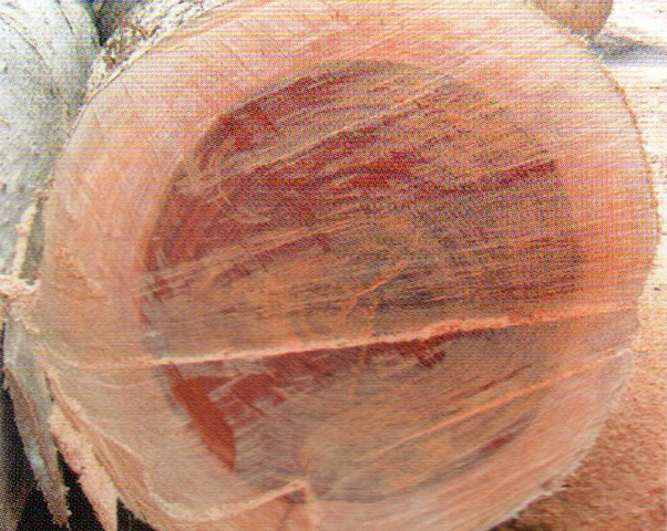 心邊材區(qū)時(shí)段明顯,心材暗紅褐色,具黑色同心圓狀細(xì)條紋,邊材粉紅褐色或淺黃白色、較寬,5-8cm。生長(zhǎng)輪明顯。